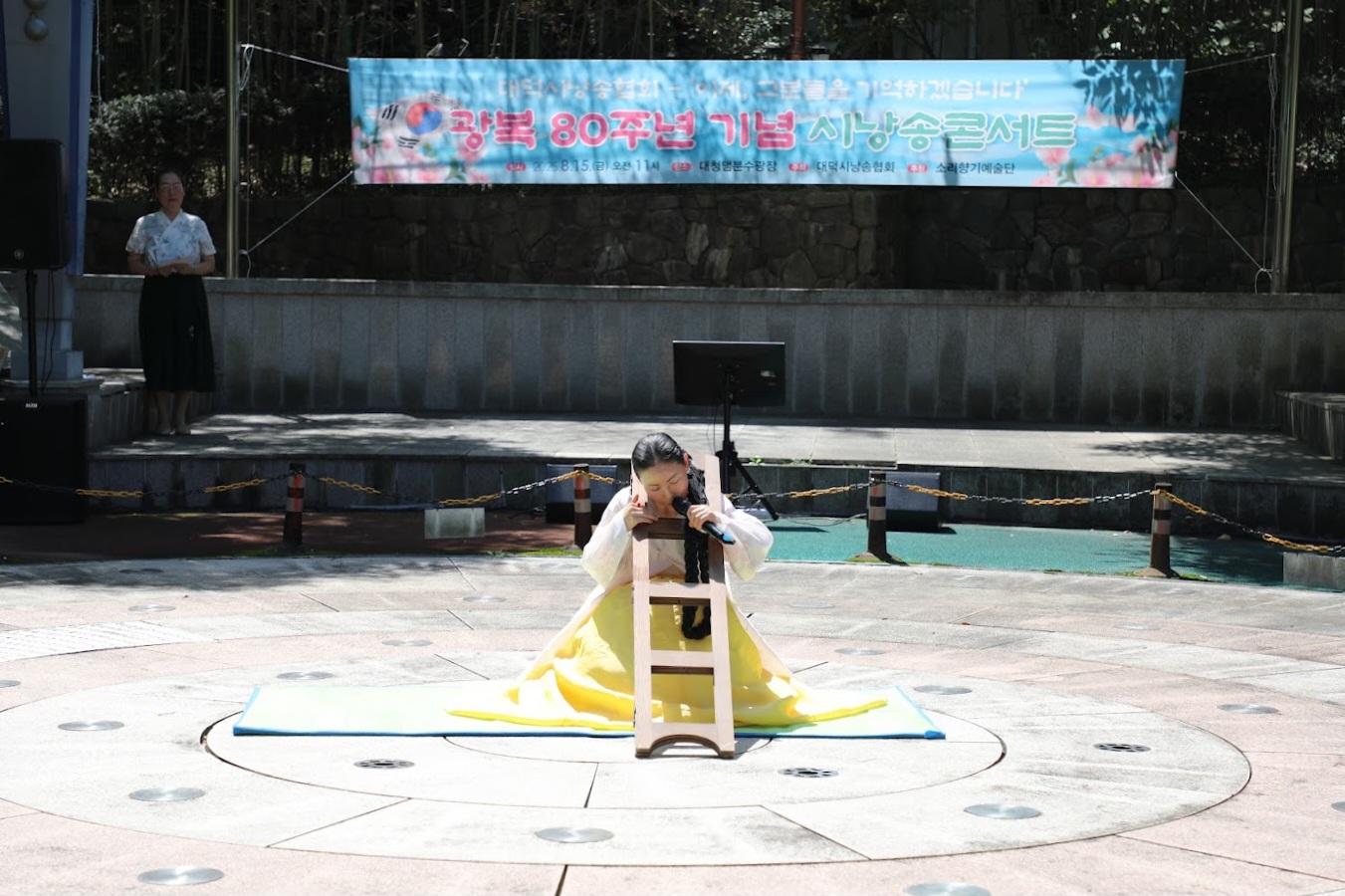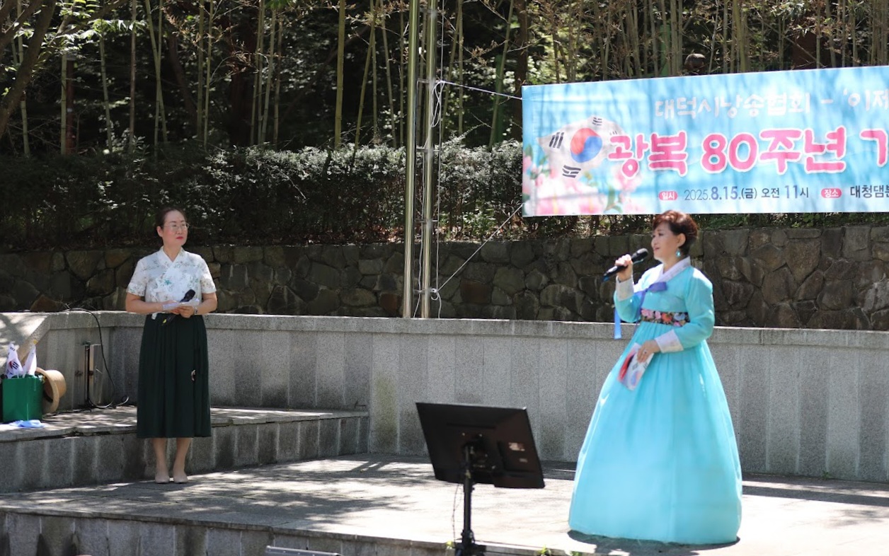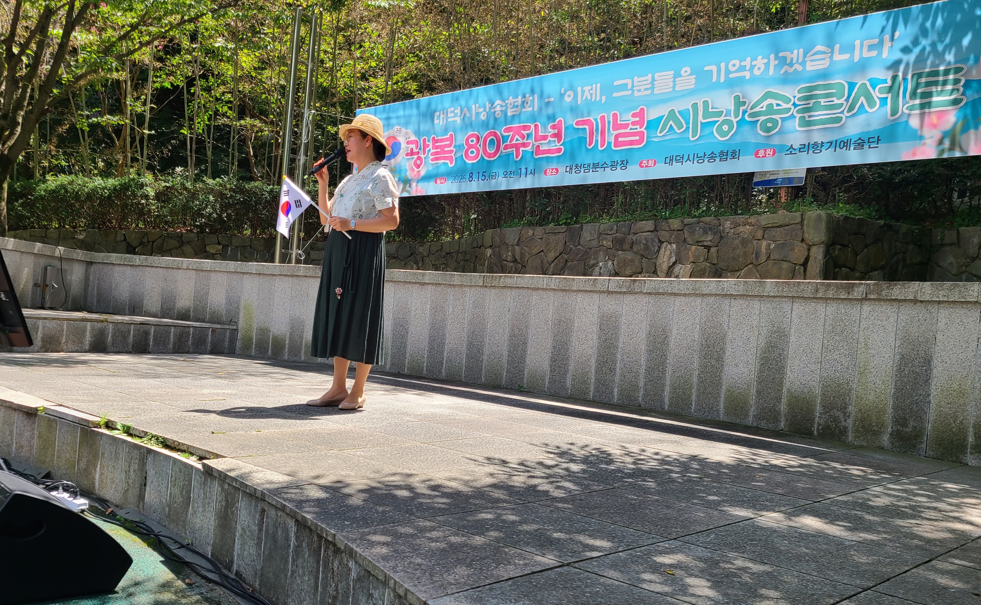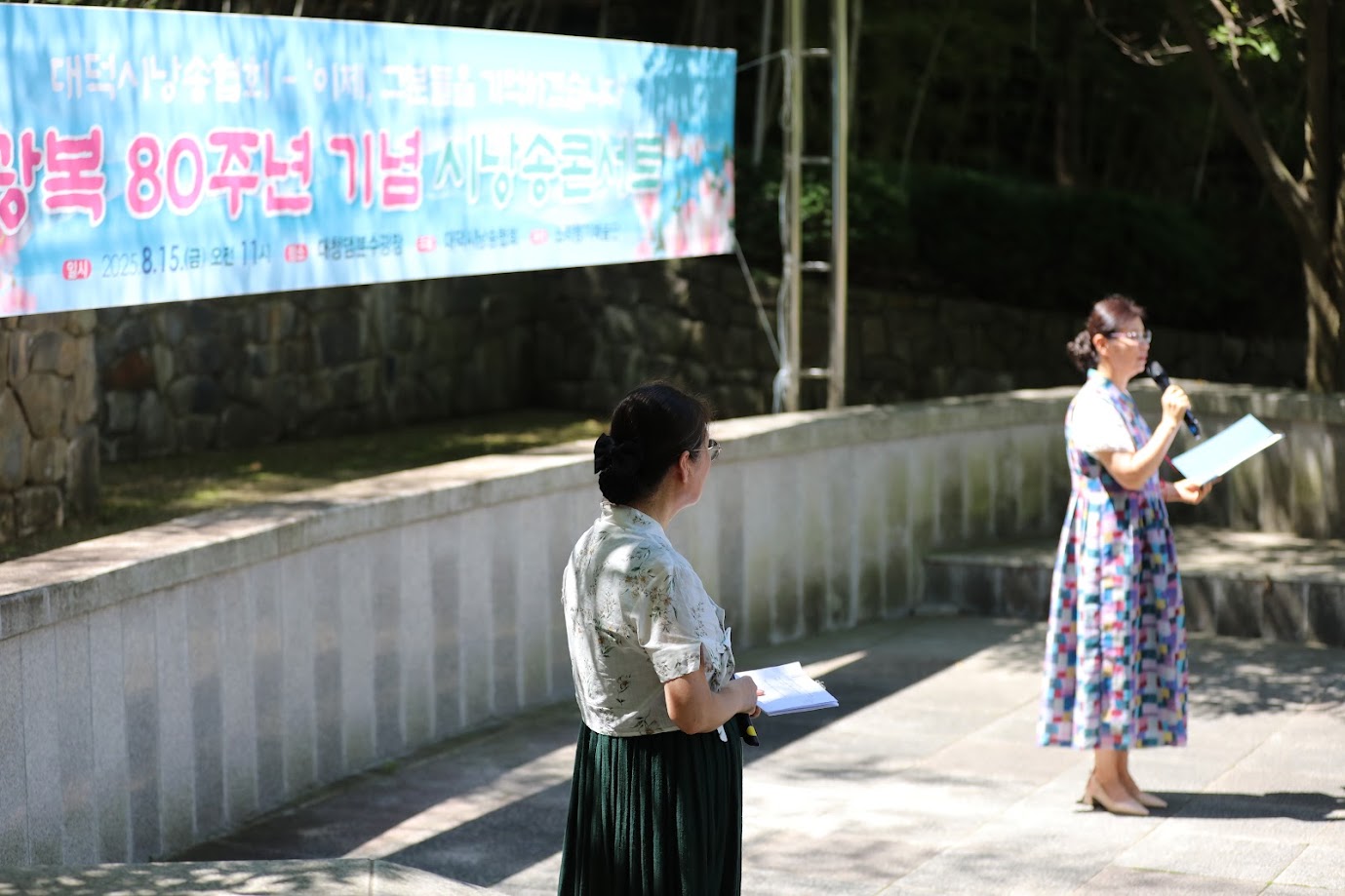 대덕시낭송협회에서 홍회장님의 기획으로 대청댐 분수광장에서 <광복 80주년 기념 시낭송 콘서트>를 진행하였다.