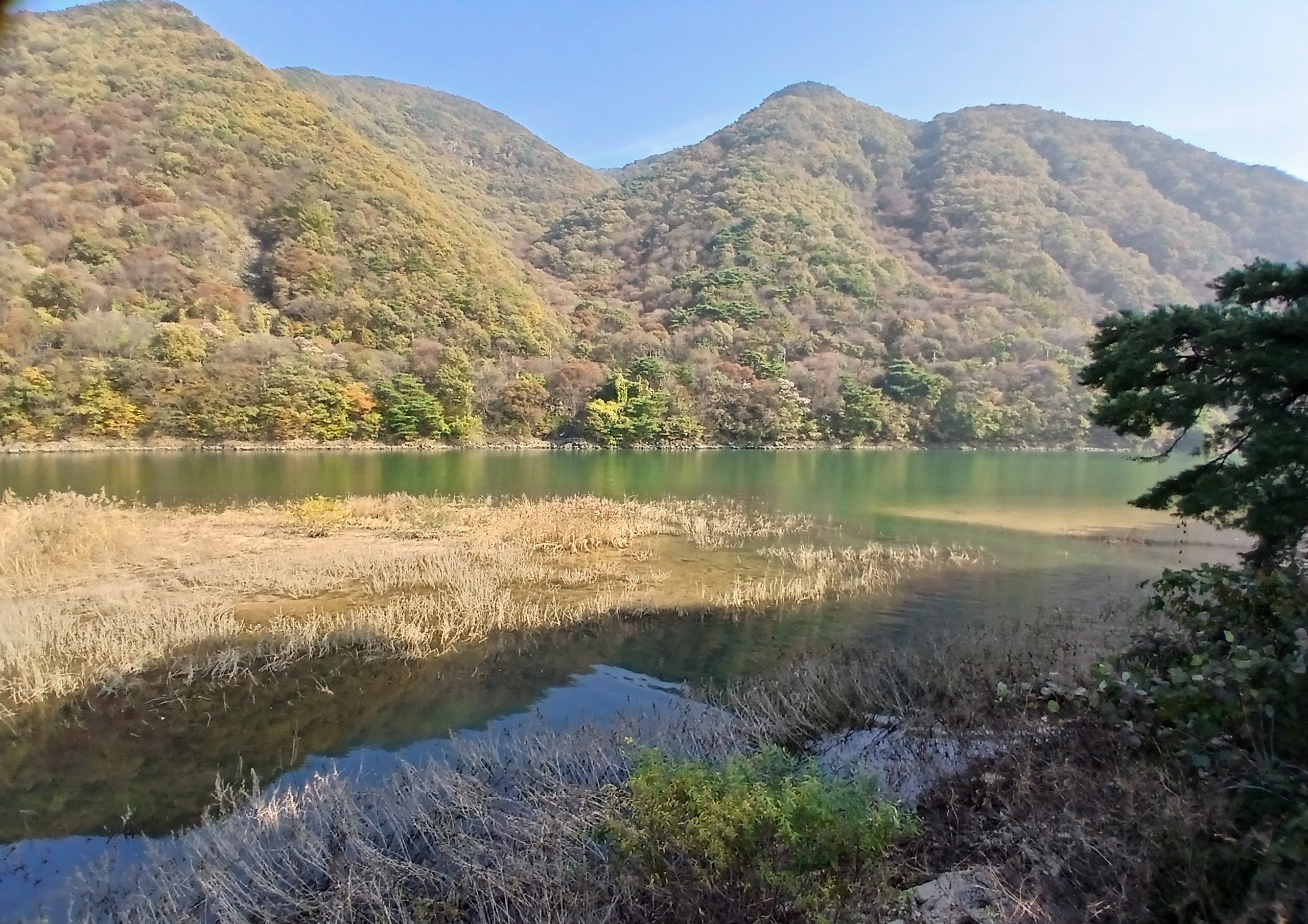 산과 호수가 어우러졌는데 대청호와는 또 다른 아기자기한 느낌이었다.