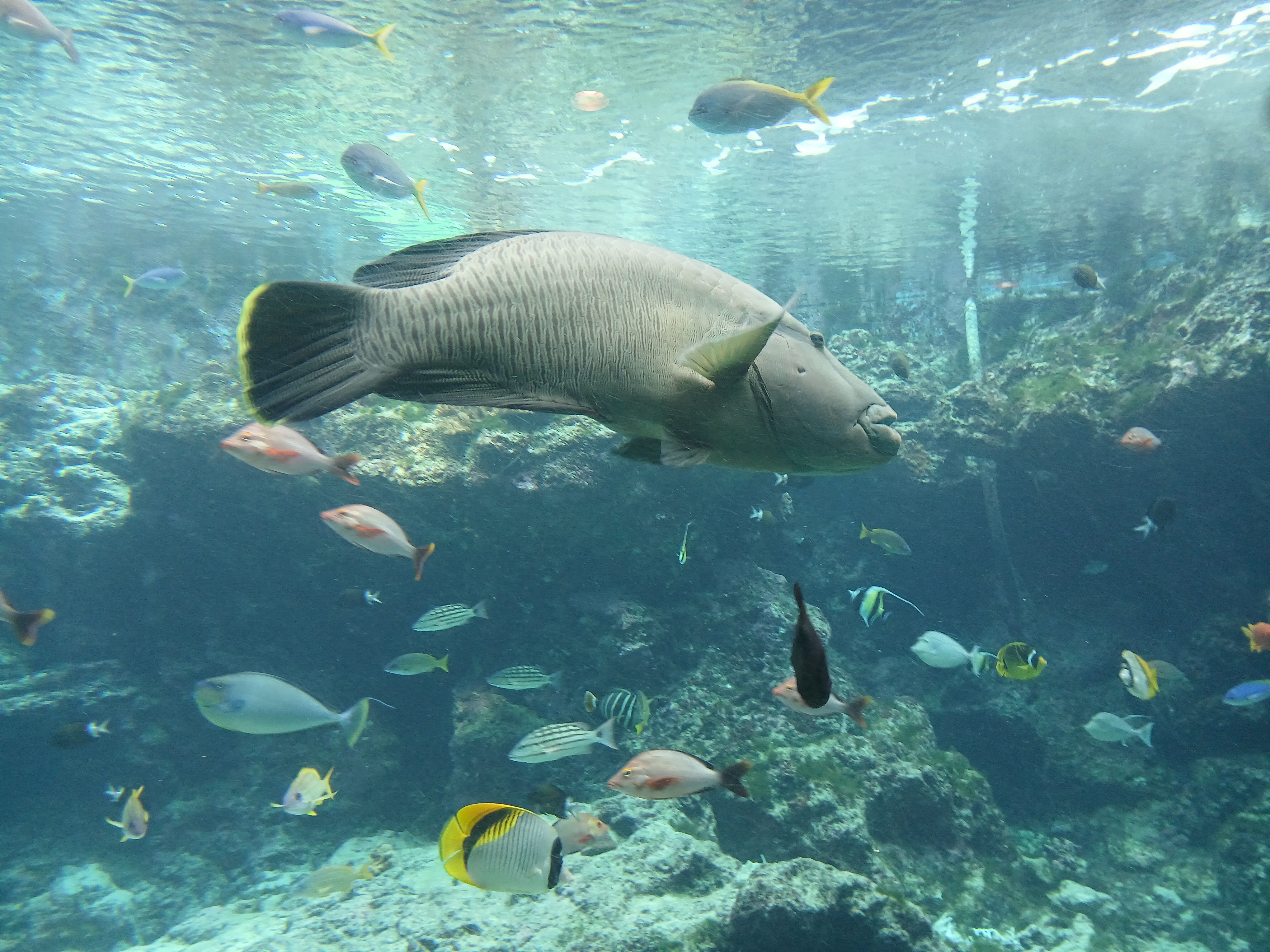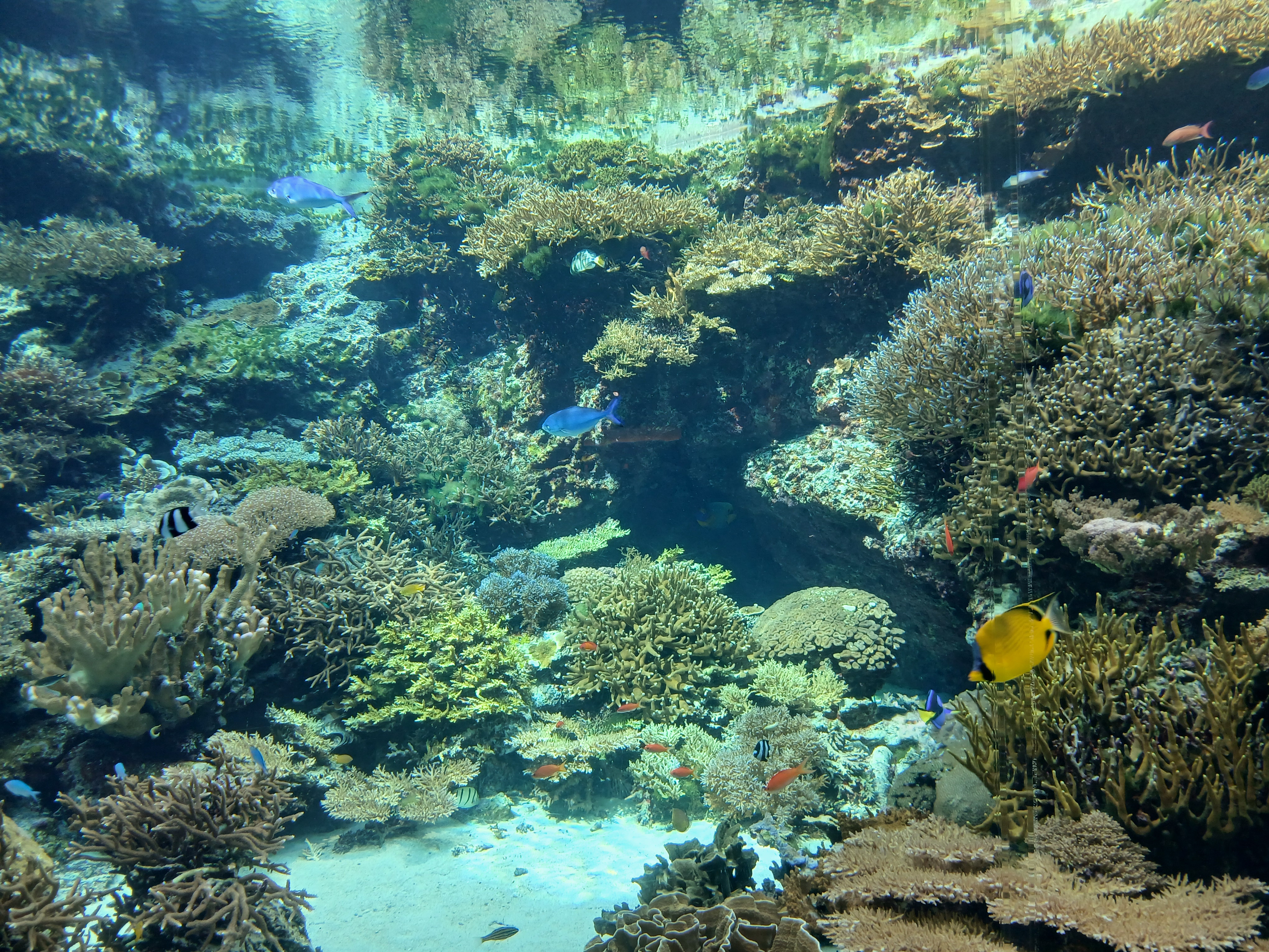대규모 산호 번식으로 오키나와 해를 재현한 이곳의 산호는 10년 이상 자라 왔으며 물고기들은 산호 성장을 방해하는 해조류와 말미잘을 없애는 역할도 한단다.