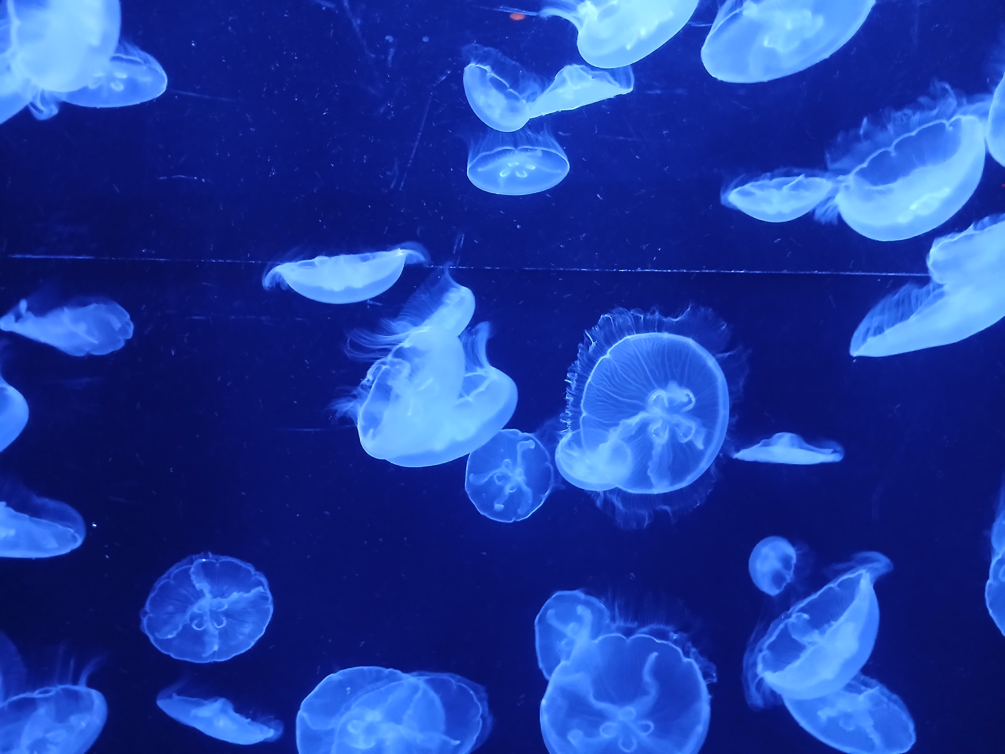 어두운 수족관에서 일행들을 놓쳐 혼자 다니며 구경을 하였다.