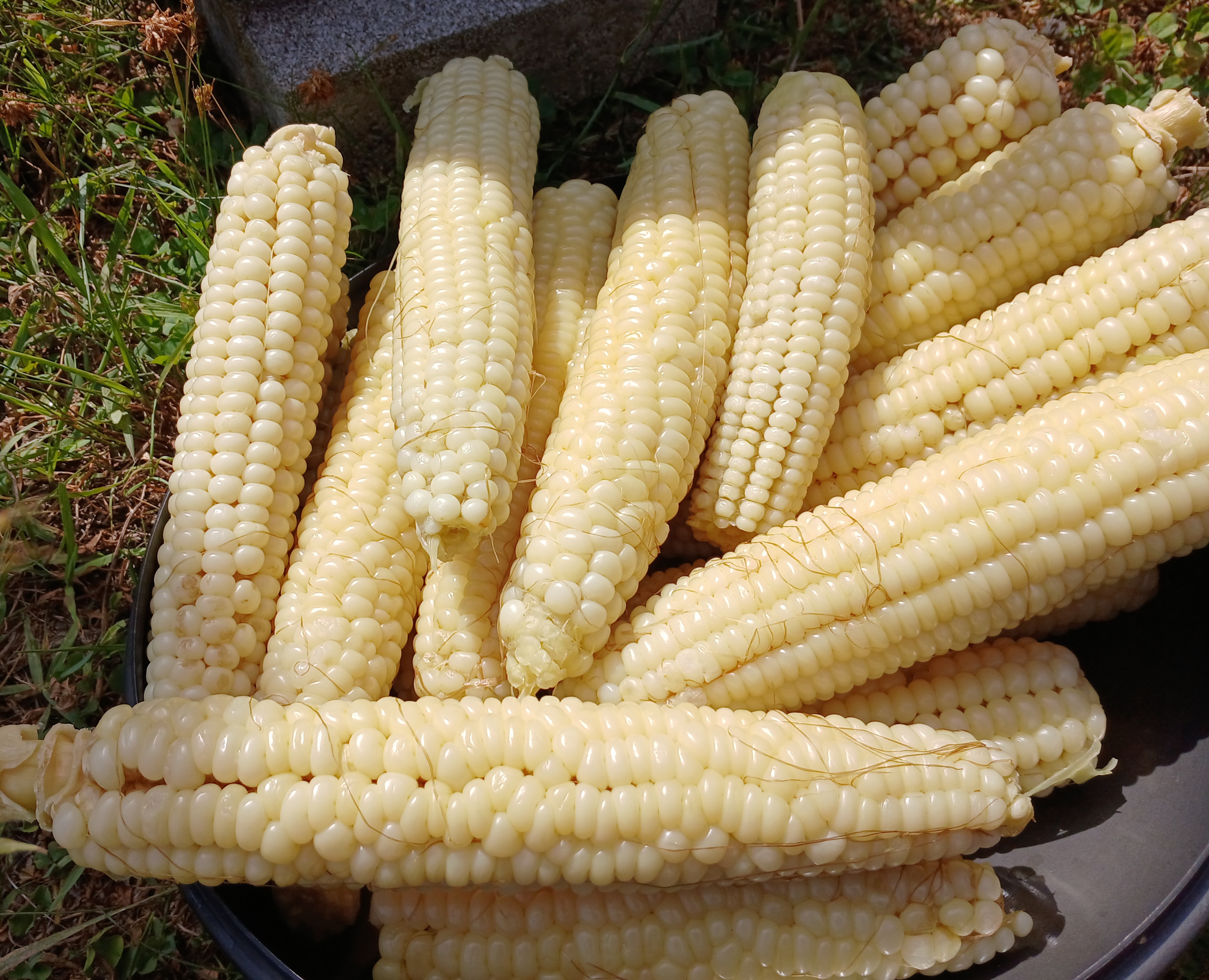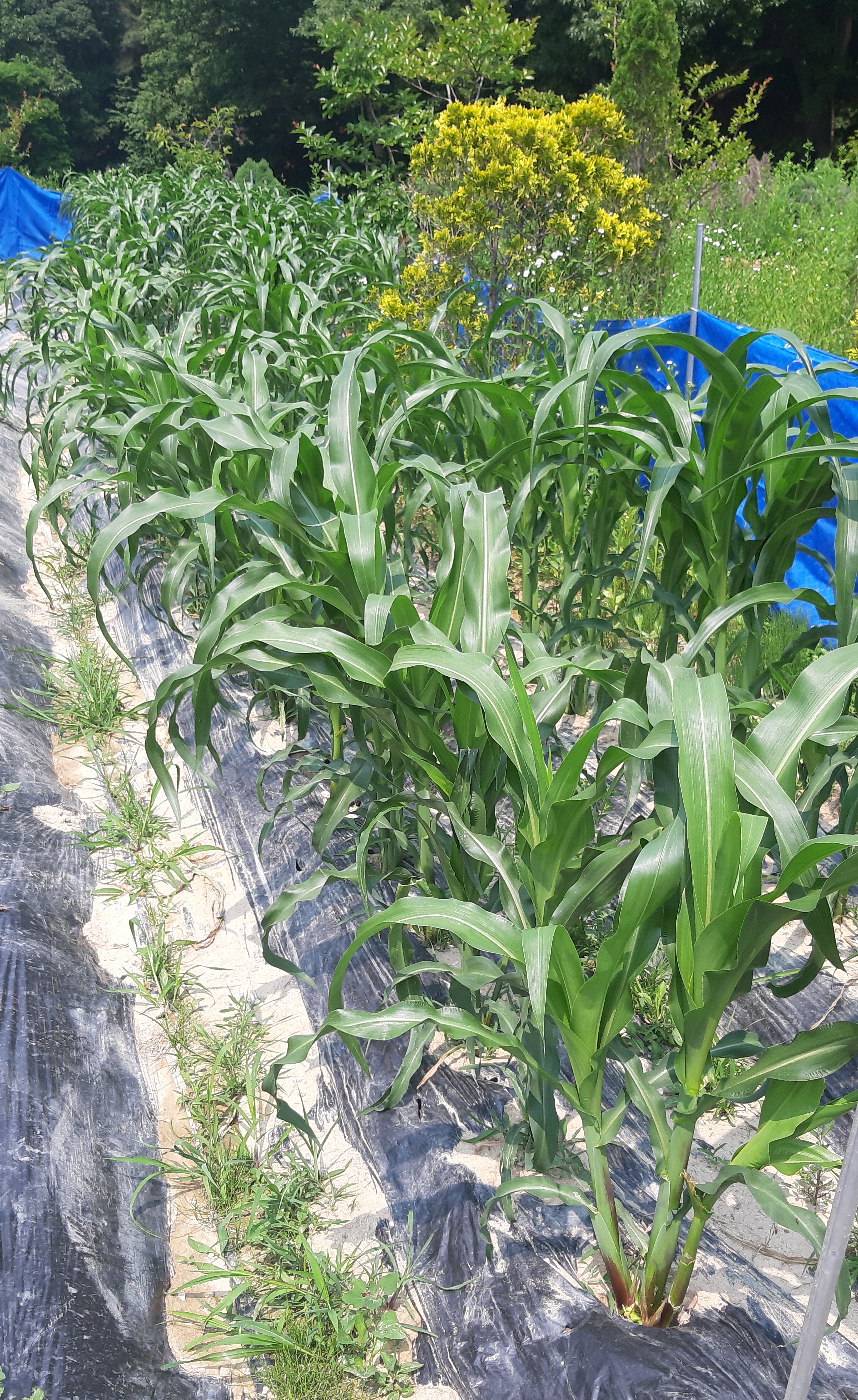 7월 12일, 첫 옥수수 수확을 하여 밭에서 한솥 쪄서 먹었는데 너무나 맛있었다.