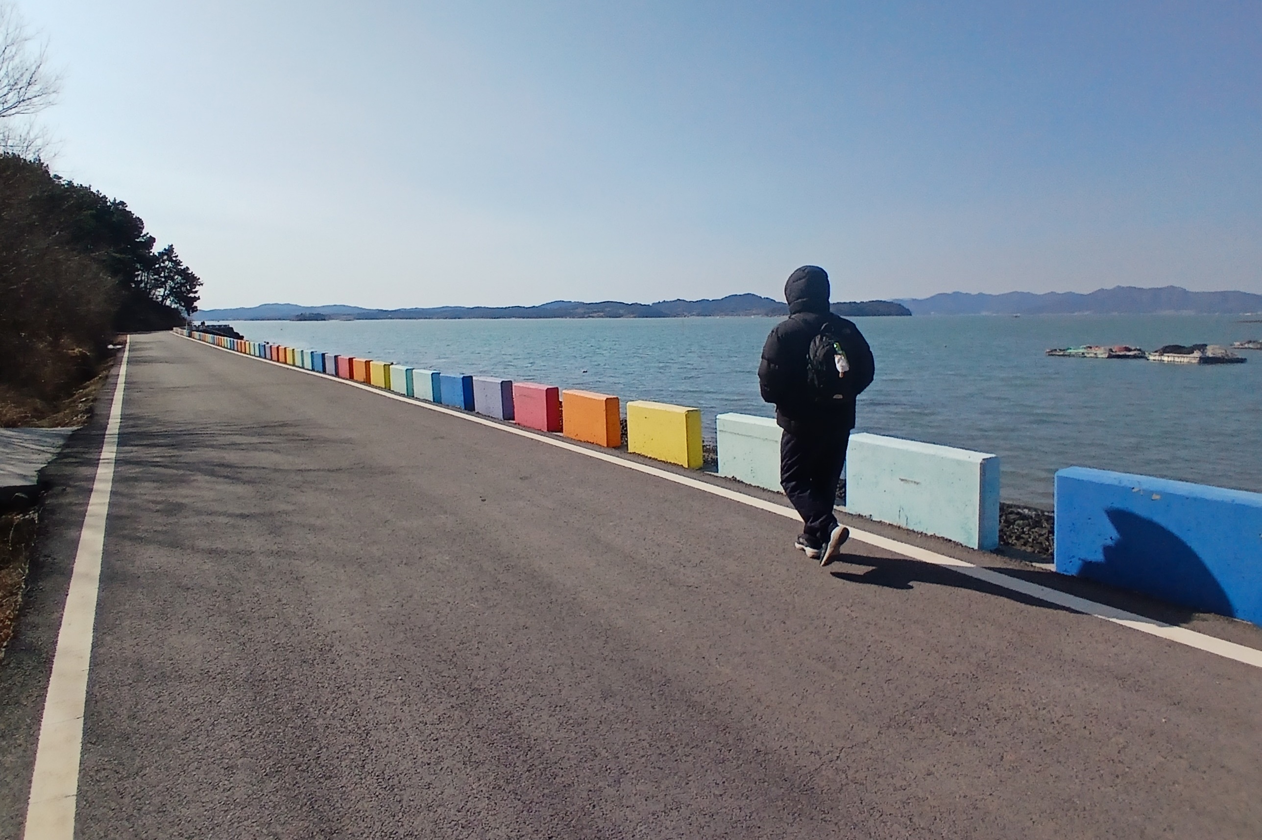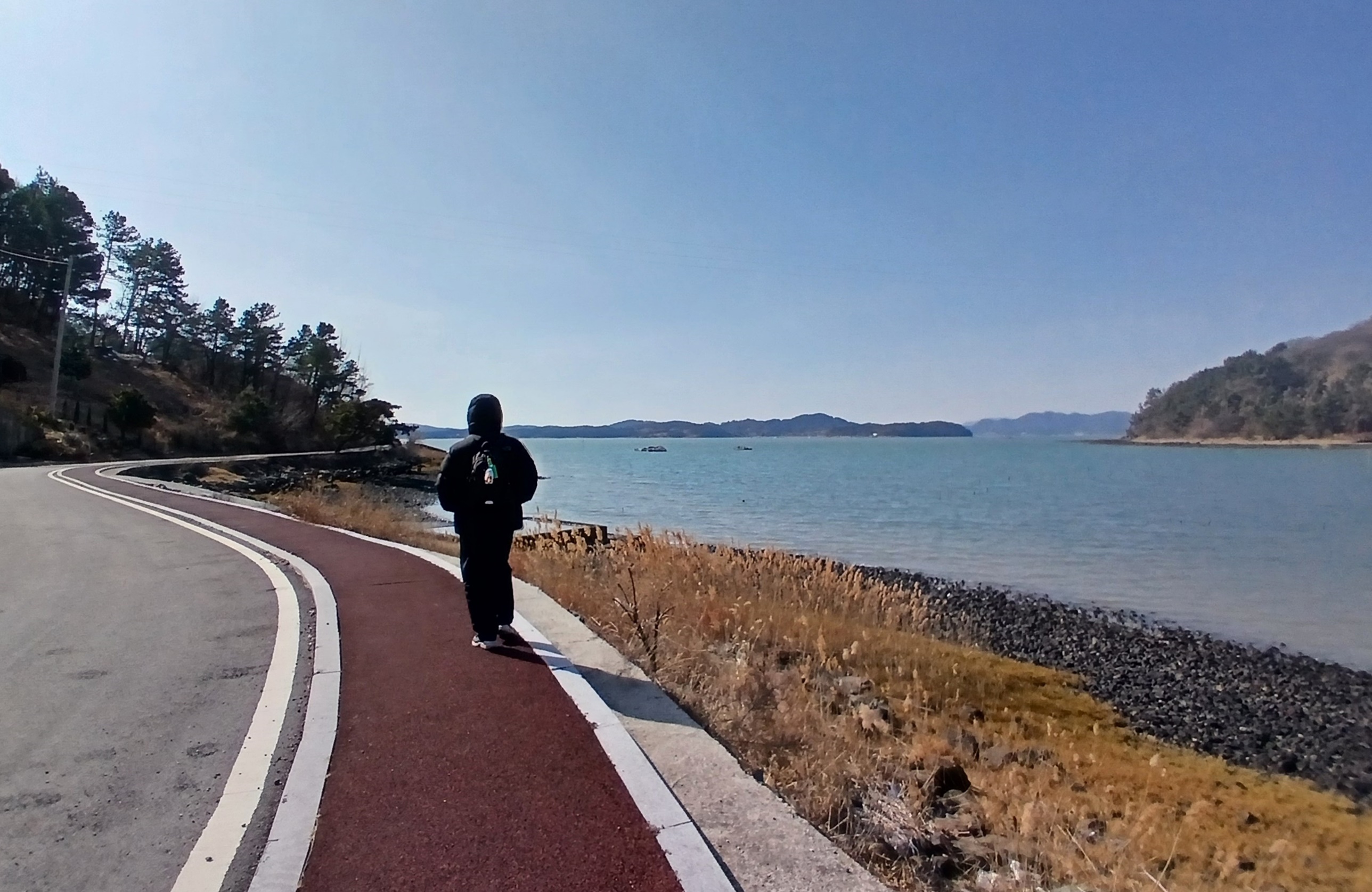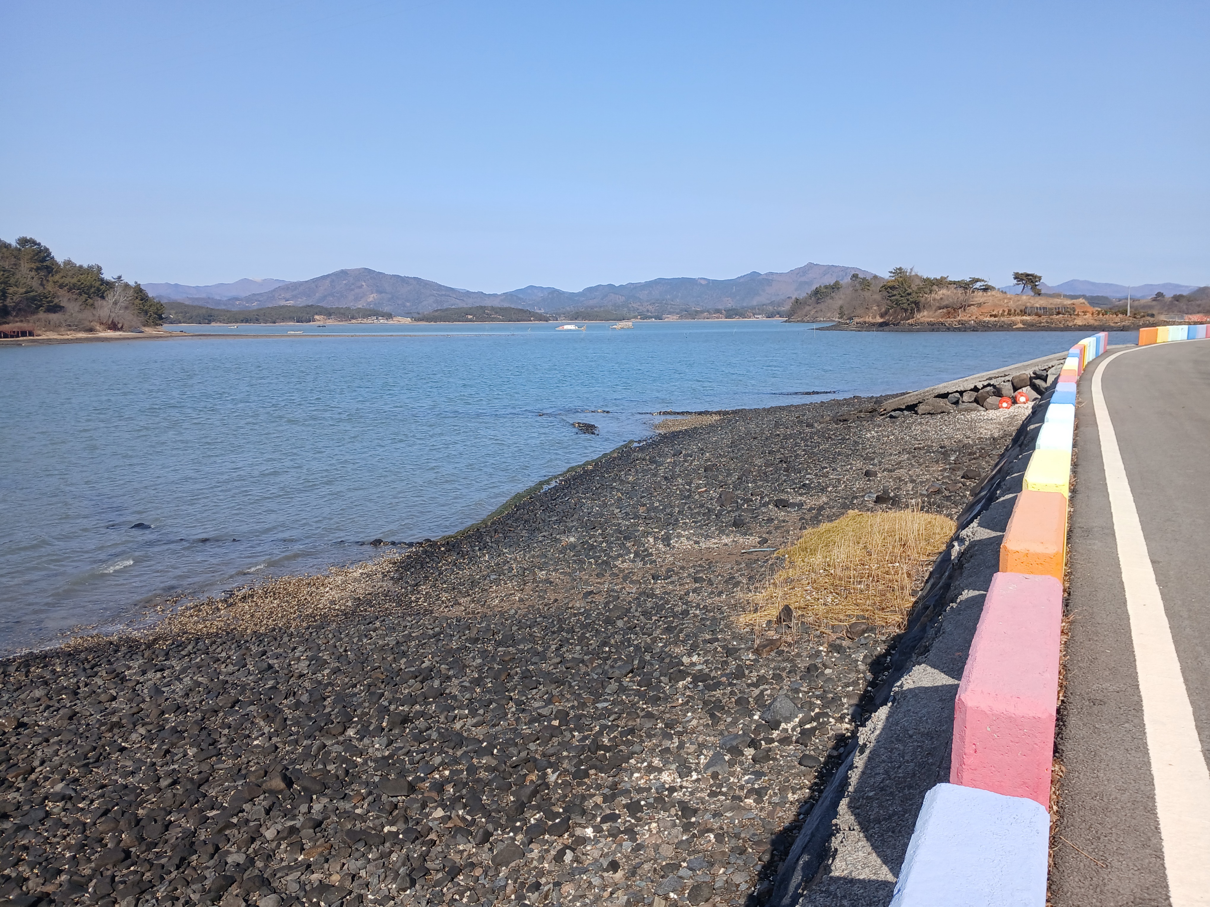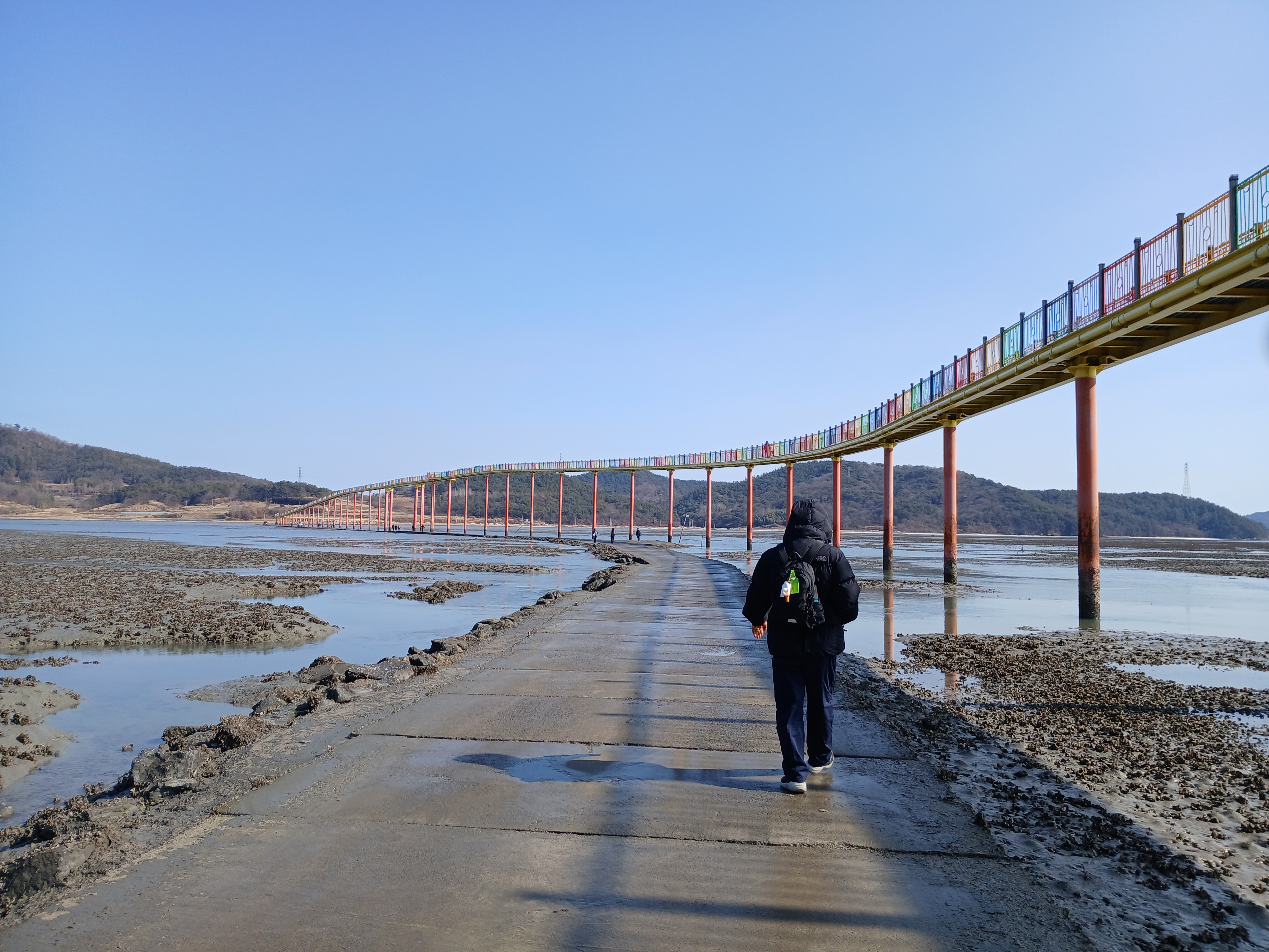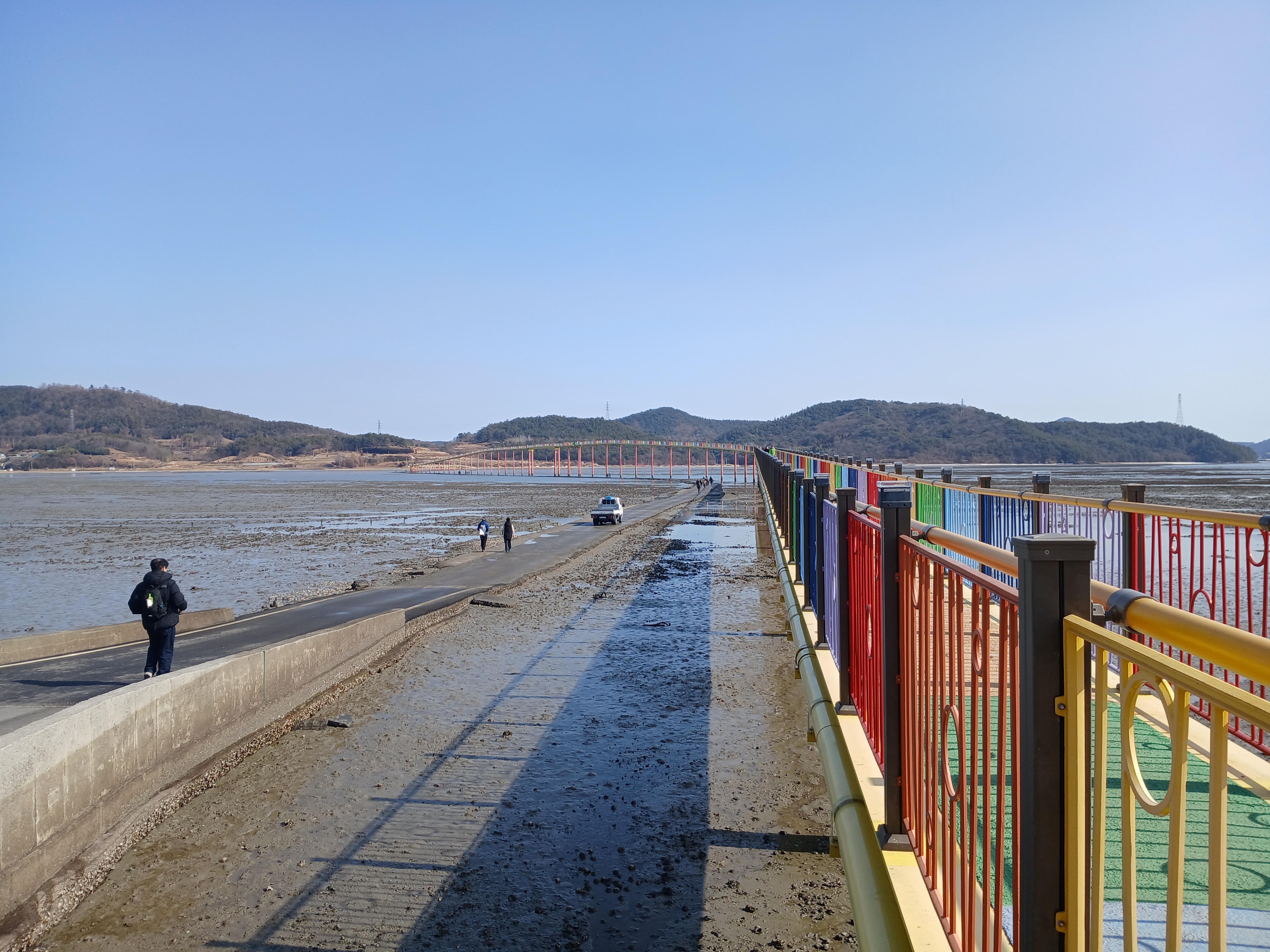 오후 1시경, 물이 빠지며 드러난 노두길을 따라 걸었다.