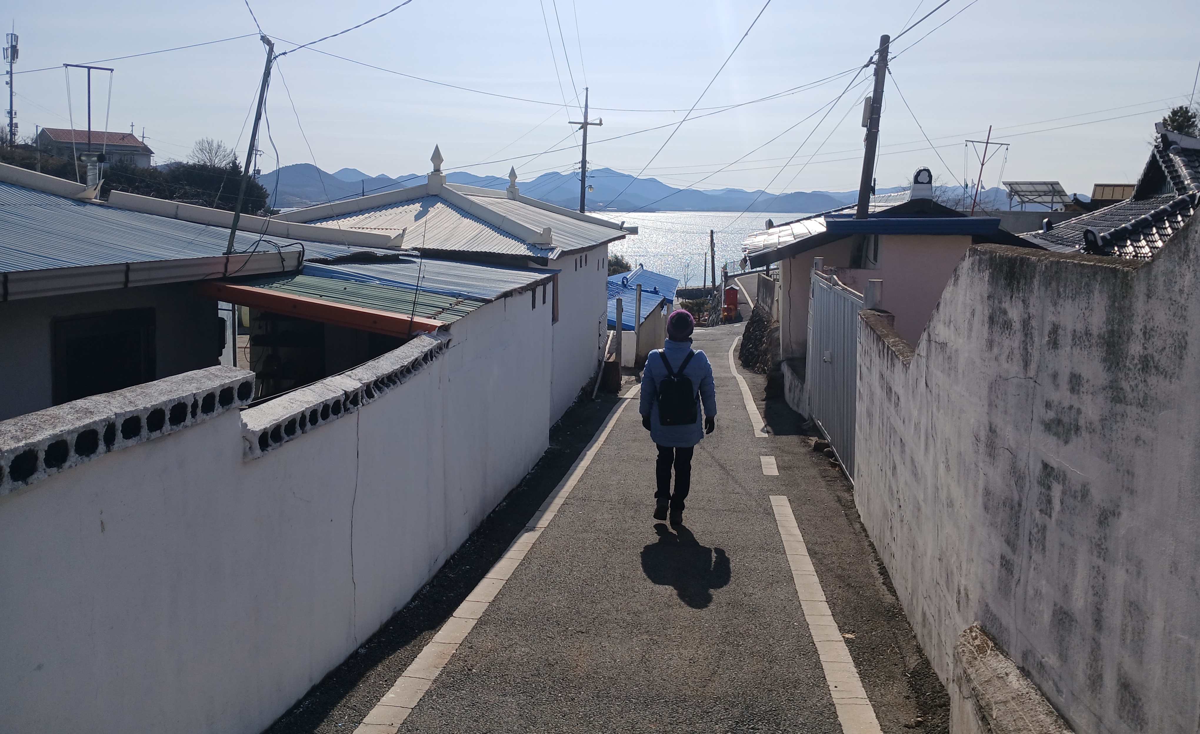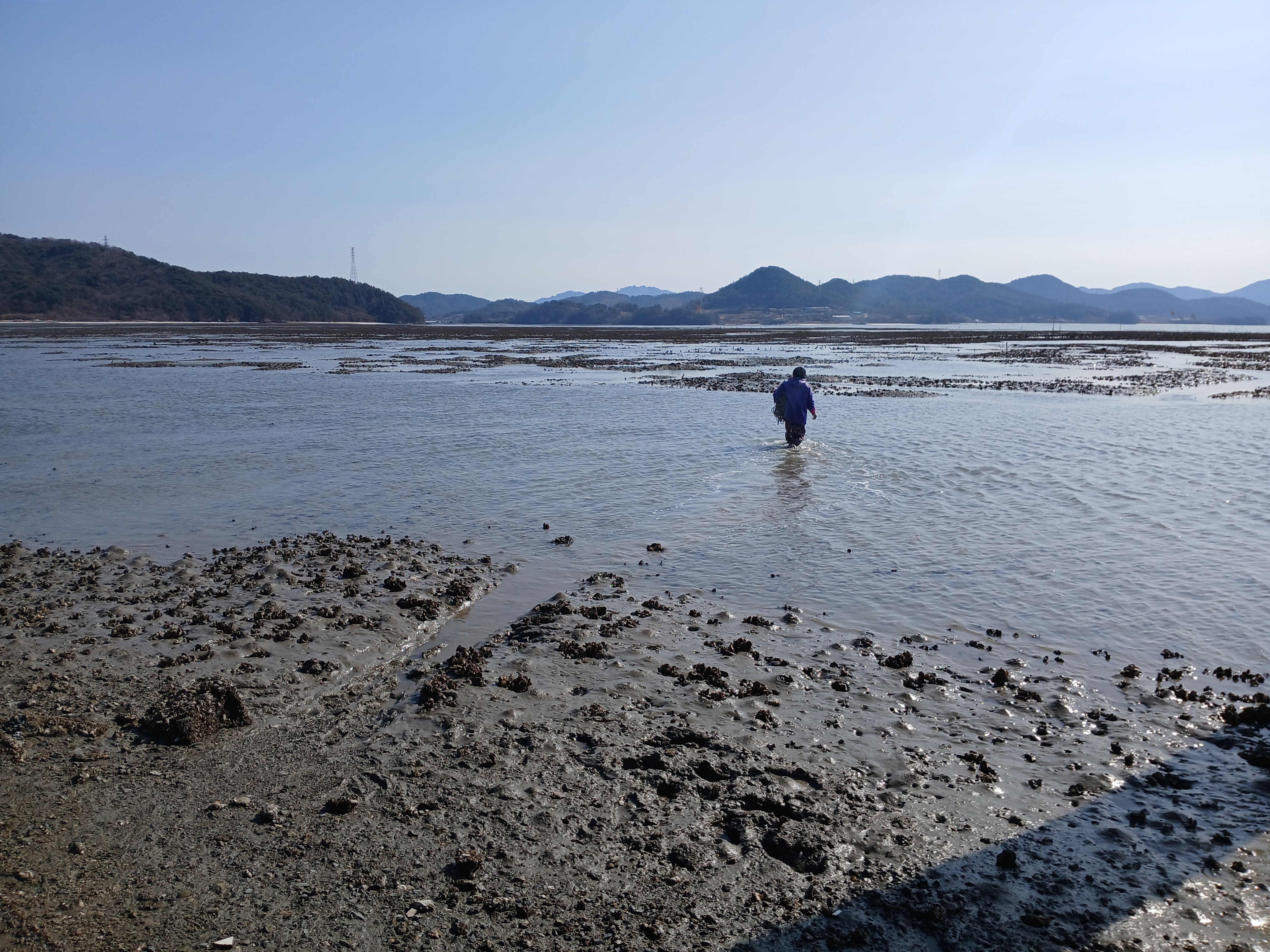 굴을 캐러 가고 있는 아낙네의 뒷모습이 씩씩해 보였다.