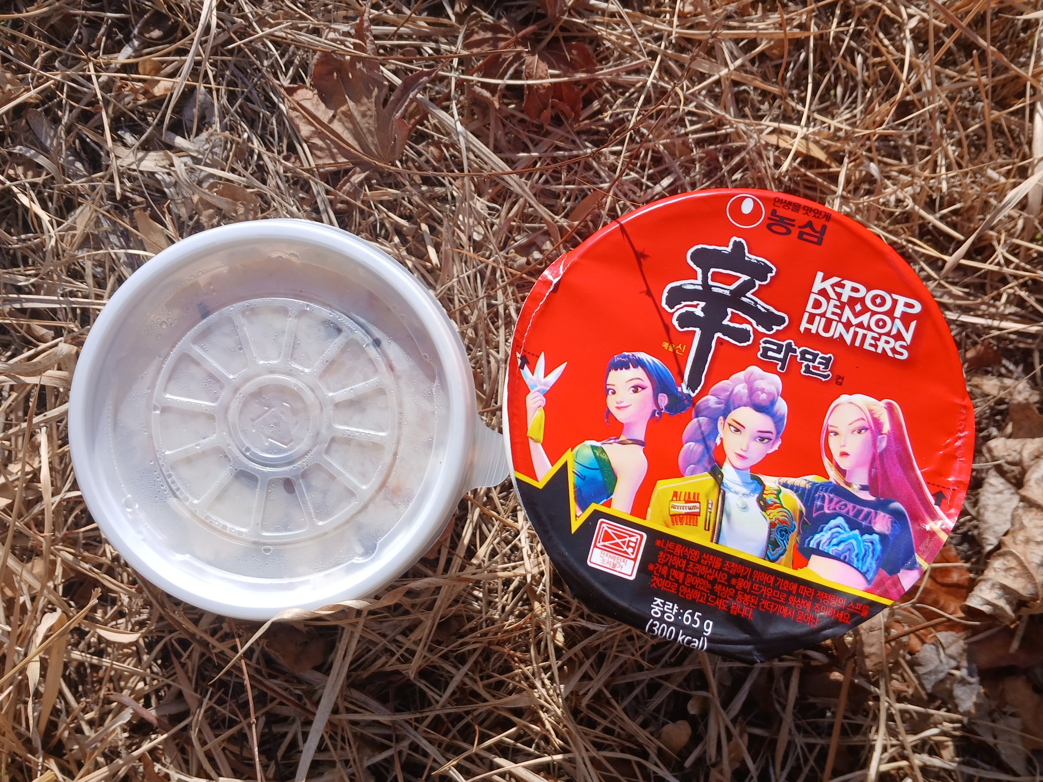 편의점에서 산, 신라면...케이팝 데몬 헌터스 캐릭터 그림이 그려져 있었다.