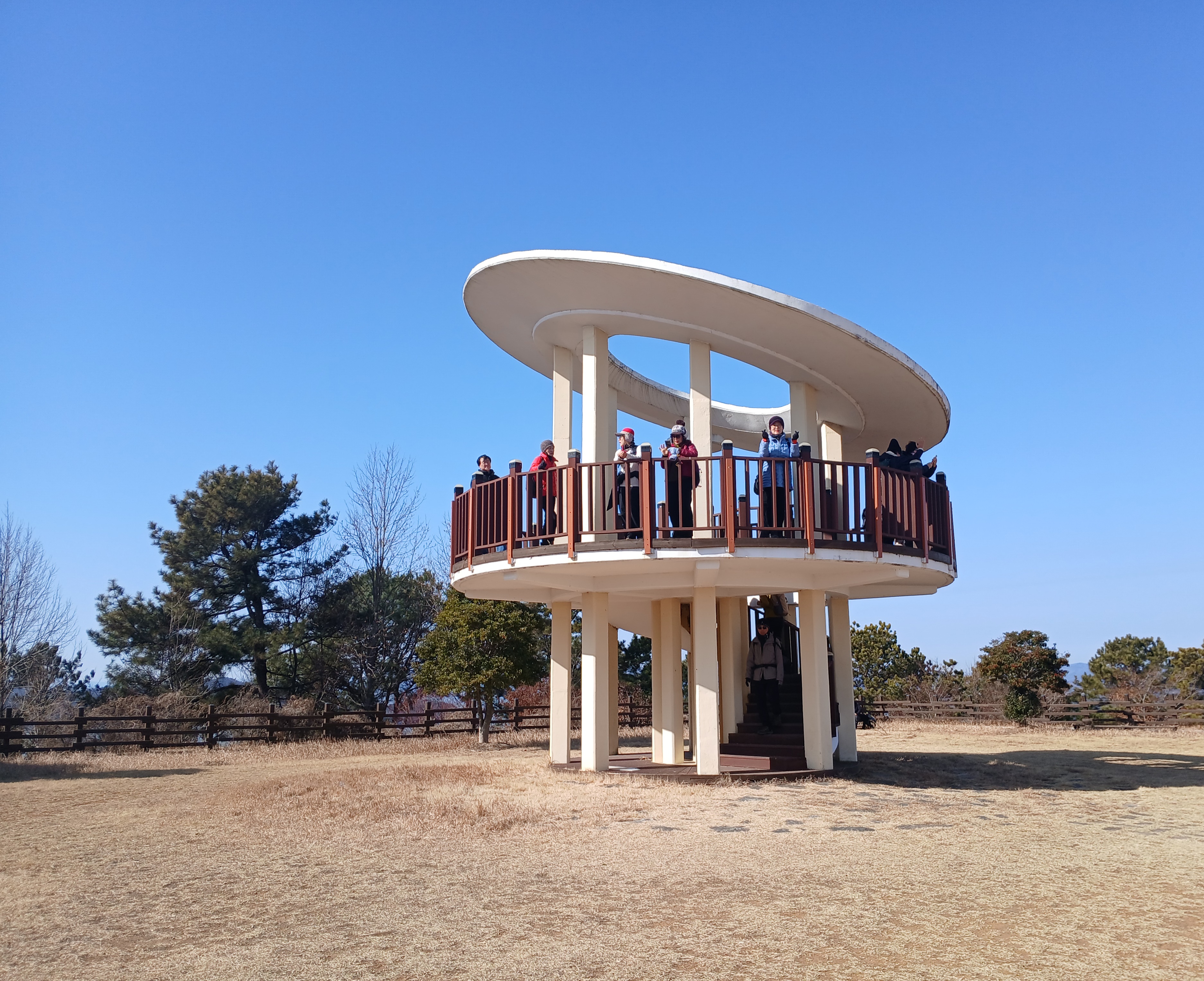 전망대 옆, 운동기구가 있던 햇살 좋은 잔디밭에 앉아 점심을 먹기도 하였다.